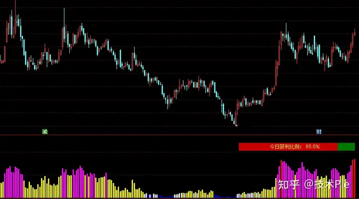 STICKLINE(W>50 AND W<=80,0,W,2,0),COLORMAGENTA;{获利比例50%-80%,强势区,洋红色柱线}