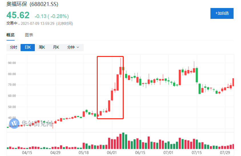 同概念中,作为国内蜂窝陶瓷领域领龙头的奥福环保,在2020年6月的六个交易日内亦大涨超90%。